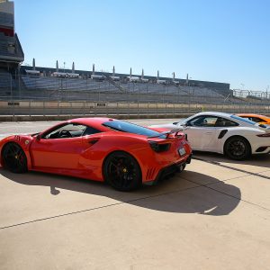 Earlier in the day, Thomas J. Henry invited special guests to an exclusive look and test drives of Ferrari, Lamborghini, of Porsche at the Circuit of the Americas, home to Formula 1, MotoGP, INDYCAR, Austin360 Amphitheater, COTA Karting, and Austin Bold FC in Austin, TX. Professional drivers Simon Pagenaud, Hélio Castroneves, Pierre Gasly, and Will Owen were on hand to give the test drives around the historic racetrack.