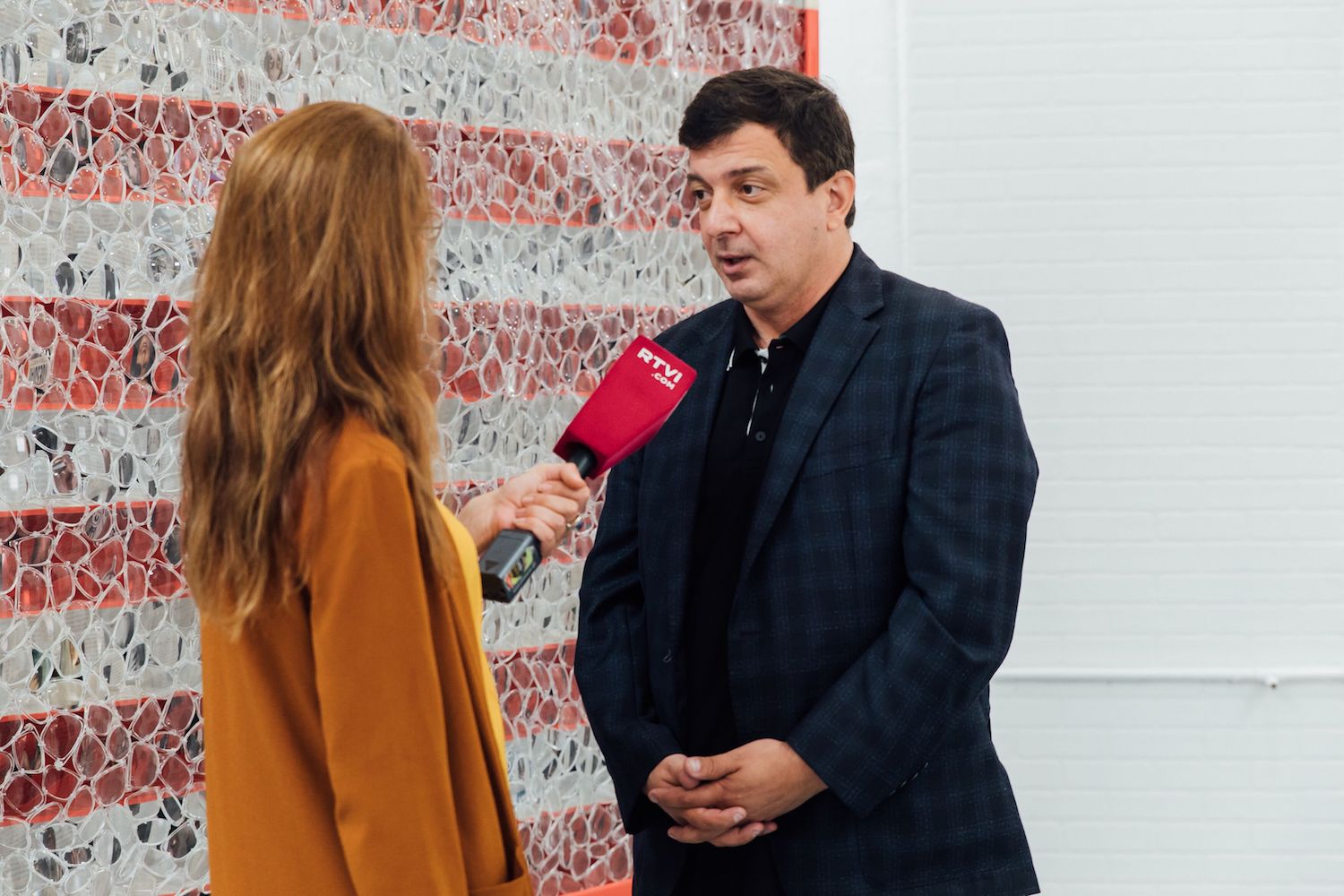 David Datuna interviewed on opening night (Anastasiia Davydova)