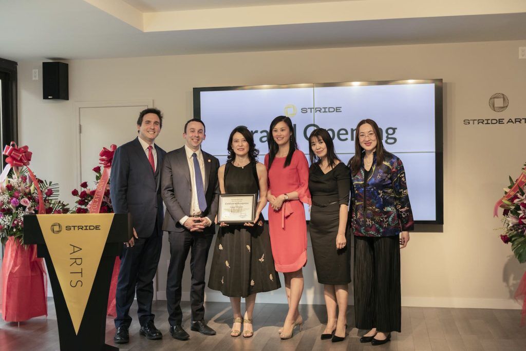 During the Grand Opening, NYC Council Member Keith Powers welcomed guests before NYC Council Member Ben Kallos and NY State Deputy Chief Diversity Officer Linda Sun, who congratulated and presented Stride Arts with Governor Cuomo’s certificate. Angel Zhang, followed by Director CG Aaronson, explained the gallery’s mission and thanked attendees. Xi Qing Li then introduced Congresswoman Grace Meng, before Roger Samet, an investor, spoke prior to Tony Wang, Chairman, WAC Lighting Co. speaking, who attended with his wife, Taining Gan, Chairwoman, GLOW Foundation. A cake was cut, and champagne poured before Xin Song then held a live art performance in front of guests including Jean Shafiroff, Lucia Hwong Gordon, Libbie Mugrabi, Peter Thomas Roth, Anthoula Katsimatides, Janel Tanna, Jeff Lima, Michele Peacock and Tatum Summer.