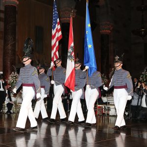 The Honorary Gala Chair was The Honorable Michael Ludwig, Governor and Mayor of Vienna. Notable guests included Host Committee members Janna Bullock, Joanna Fisher, Ana Saucedo, Randi Schatz, and Marisa Rose Van Bokhorst, Honorary Guests Florence Hvorostovsky and Ann Ziff, Junior Chairs Emily Mohr and Colgate Rumbough, Junior Vice Chair Briana Lestage, as well as Star Jones, Ricardo Lugo, John Paulson, Karlheinz Muhr, Martin Shafiroff and Stifel Investment Services, Hikmet Ersek (CEO of Western Union), Actress Samantha Mathis, Lukas Barwinski-Brown (CEO, Lang Lang International Music Foundation), Trisha Willis, John Willis, Diandra Douglas, Sandra Stockmayer (Viennese dancing school Svabek), Agnieszka and Witold Balaban, and U.S. Military Academy West Point Cadets who marched in with flags representing America, Austria, and the European Union before singing the three respective anthems.