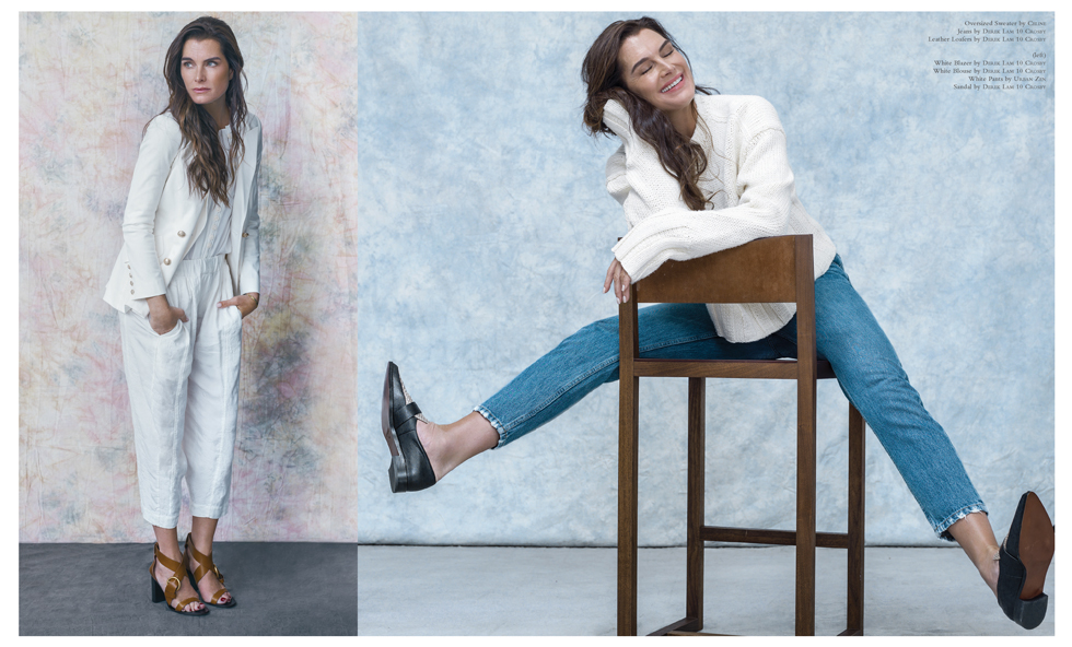 In the back of the tiny French bistro, over two steaming lattes, it’s hard not to ask about the new Calvin Klein jeans label, which is an image of Brooke Shield’s iconic 1980s campaign. I ask, “So how did it feel to get back into your Calvins?” Brooke smiled, “Well the funny thing was, when I went to the Calvin event, I was wearing a Calvin Klein outfit but not the jeans. After the show I went back to my house and looked through all my jeans, and I realized that I don’t own one pair of Calvins. So during a call with my agent, I mentioned that I didn’t have any Calvins, and a few days later a bag filled with jeans came to my house. I took them to my room, alone, and I tried them all on. They gave me an array of jeans. I sat on the floor going through the jeans . . . and yes, it was an emotional moment for me and I didn’t want anyone else to be in the room. I wanted to have my own experience. Don’t worry, I didn’t get on the floor and do the pose. If I had done that, I would have had to be sent away.” She laughs and takes a sip of coffee. “But I did look at myself in the mirror and I thought: Okay, okay, this is good . . . you look good. And then a really cool thing happened. I got to give two pairs of the jeans to my daughter Rowan. She is fourteen years old. That’s close to the age I was when I shot the ad. I didn’t say anything when I gave her the jeans, and we didn’t talk about it, but it was definitely a full-circle moment.”