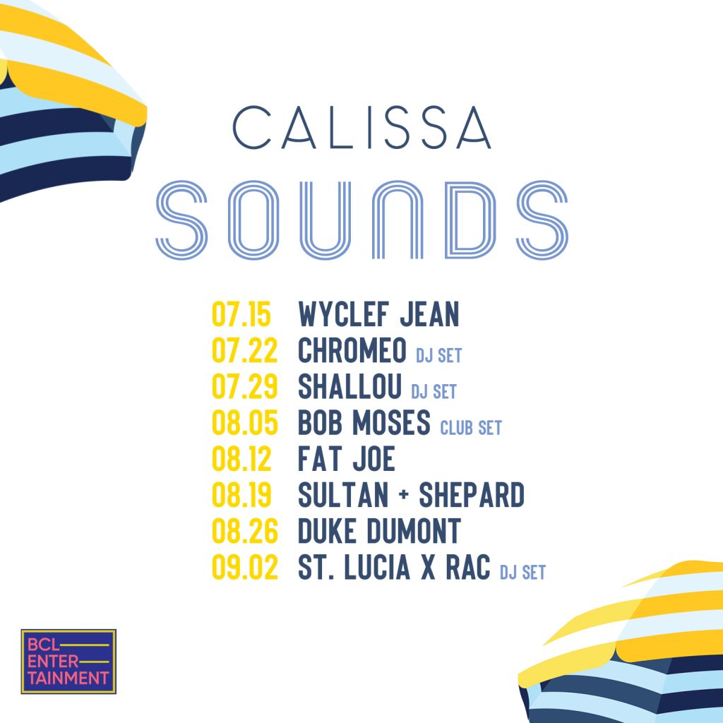 Calissa in Water Mill and BCL Entertainment have partnered again for another season of Calissa Sounds, a one-of-a-kind eight-week live music series. Calissa Sounds’ 2022 season will begin with a live performance by Wyclef Jean on Friday, July 15th, followed by a DJ Set from Chromeo on July 22nd, a DJ set from Shallou on July 29th, a club set from deep house electronic duo Bob Moses on August 5th, a live performance from Fat Joe on August 12th, a DJ set from Sultan + Shepard on August 19th, and a DJ set from Duke Dumont on August 26th. The summer series will close on September 2nd with a collaborative set from St. Lucia X RAC for the second time ever, the first being last year at Calissa.