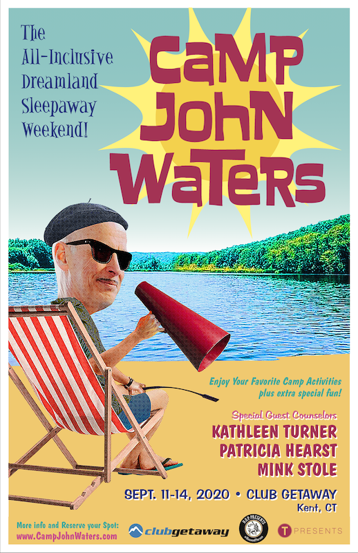 Director John Waters (“Female Trouble,” “Cry Baby,” “Cecil B. Demented”) will return to Club Getaway in Kent, Connecticut to host his 4th Annual Camp John Waters. This once in a lifetime sleepaway-camp experience for his super fans takes place from September 11th – 14th, 2020. The 300-acre adult summer camp in the Berkshire Mountains will be transformed into a cinephile’s dreamland for this exclusive weekend unlike any other.