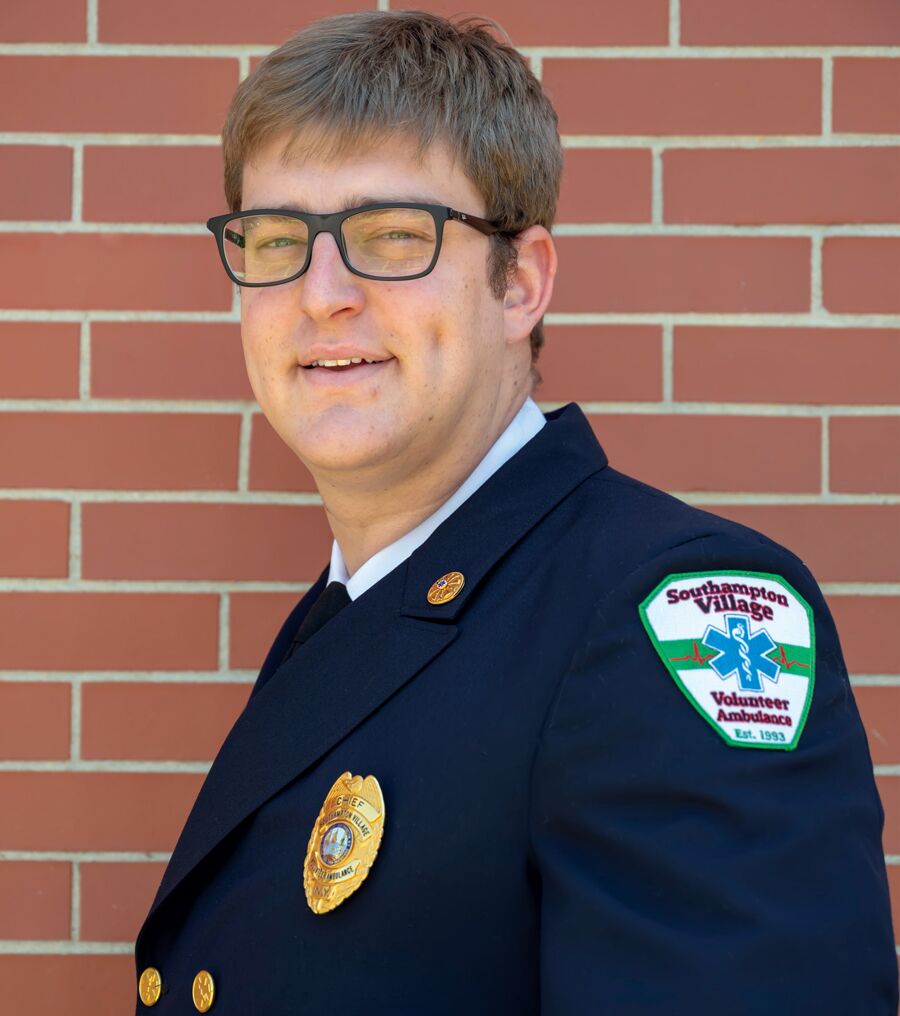 Christopher Epley, a lifelong Southampton Village resident, has been a volunteer with the SVVA since 2011. He received his certification as a NYS EMT-B in 2012. He was elected as secretary in 2013, second assistant chief in 2014, the first assistant chief in 2017, and chief in 2019. Christopher is married to Amanda Epley. He holds a BS from St. Joseph’s College.