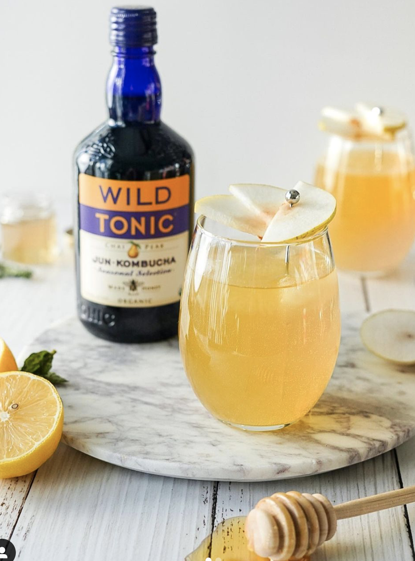 The perfect beverage to spice up your standard cocktail or mocktail recipes this holiday season. Impress your family and friends with a healthy kombucha beverage, a favorite being Wild Tonic Jun Kombucha, in the form of sophisticated cocktail creations. Sip and savor these probiotic and prebiotic filled cocktails made with Jun Kombucha (also known as “the Champagne of kombucha“).