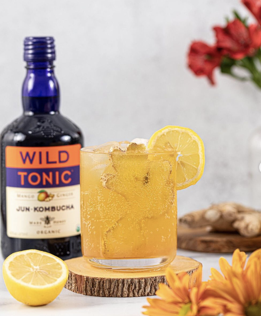 – 2 to 3 oz @drinkwildtonic Mango Ginger Jun Kombucha