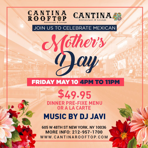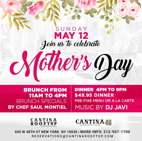 Cantina Rooftop and Cantina 48, with some of the best rooftop views of the Manhattan skyline, will be celebrating moms not only on Sunday, May 12 but also for Mexican Mother’s Day on Friday, May 10!