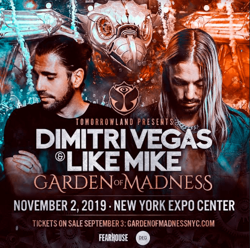 In partnership with Tomorrowland, the famed Belgian event will make its United States debut with an exclusive show at The New York Expo Center (1110 Oak Point Ave, Bronx, NY) on Saturday, November 2nd with Dimitri Vegas & Like Mike at this year’s only Garden of Madness event in the country. The event is being co-produced by DEG Presents & Fearhouse NYC. Additional special guests to be announced. Tickets go on sale Tuesday, September 3rd and to sign up for pre-sale visit, gardenofmadnessnyc.com.