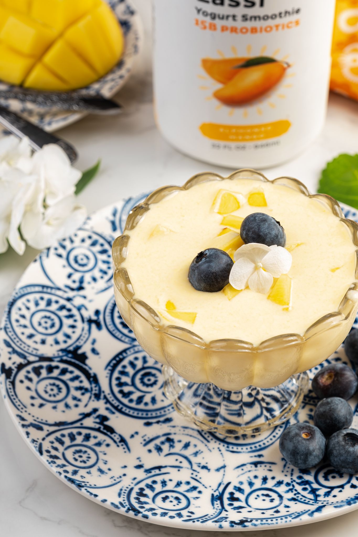 • DAH! Lassi (flavor of your choice) mixed with mango and blueberries. A Fancy Thanksgiving dessert or pregame for the big day to protect your gut.