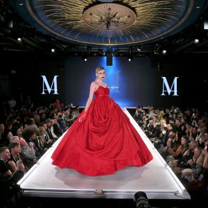 Daughter of Kelsey and Camille Grammer Mason Grammer, iconic 1990s supermodel Irina Pantaeva, Billboard recording artist Consuelo Vanderbilt Costin, New York City Ballet dancer Georgina Pazcoguin and Project Runway’s Mimi Tao walked in the runway show, which featured Breton’s signature tailored women’s suiting, chic wrap coats with fur collars, and voluminous ball gowns. As part of his presentation, the designer debuted his new interactive couture NFT – created as a 3D animation – by which loyalists can, via photo scan, become fully animated avatar supermodels, complete with a Malan Breton wardrobe, but of course.