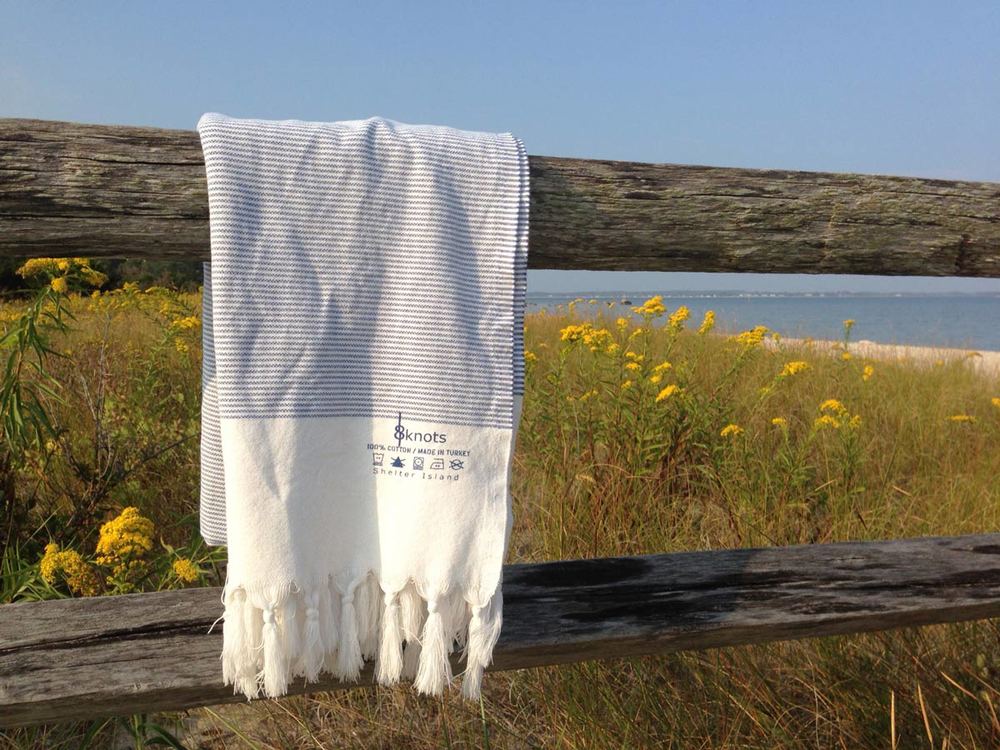 For the coastal dweller, beach goer, boater, surfer, and for all those who love the waterside – the Shelter Island based company, 8knots offers a distinctive range of products for your coastal lifestyle. Founder and designer Marcia Bayard debuted 8knots from her studio on Shelter Island in the summer of 2009. Starting the company with her own interpretation of the pestemal, an authentic Turkish bath or hammam towel. 8knots now offers products for the shore home dweller, the boater or beach goer in mind including bath and beach towels, robes, soaps, table linens, and resort apparel & accessories.