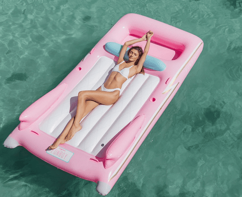 Take your swim float to the next level with a case of Vinny bubbly. Available at WainscottMain.com, $22.