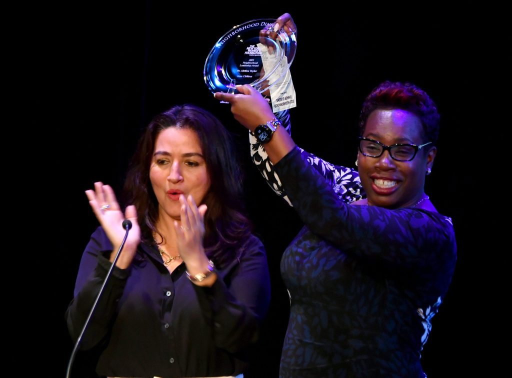 This year the Foundation gave the Neighborhood Leadership Award to Dr. Althea Taylorthe Executive Director of Hour Children, who has done phenomenal work on incarceration reform and in helping women with substance use and mental health disorders who were formally incarcerated and to Carina Kaufman-Gutierrez of Street Vendor Project, who has as worked to pass city and state legislation to reform the street vendor industry and to create a relief fund for excluded workers. Both organizations are The New York Women’s Foundation’s Grantee Partners.