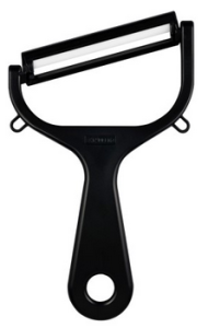 Made with a ceramic blade that stays sharp up to ten times longer than steel blades, this peeler is ideal for peeling thick rinds, shredding cabbage, or shaving hard cheeses. It also has a lifetime warranty! Kyocera Extra-Wide Peeler; $17.95