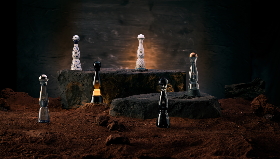 opaque glass alludes to the smoke during the cooking process, the texture of its dark ceramic base to the volcanic rocks that cook the agave cores, and the cap and emblem, both copper in color, to the stills used to distill the tequila.