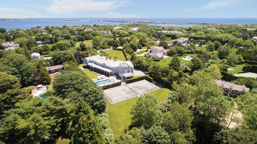 A gated drive wends its way to the arrival courtyard sheltered by a porte-cochère. The dramatic entry opens past a curving staircase to the gracious living room with fireplace, gourmet eat-in-kitchen servicing the formal dining room, and a relaxed, secondary living room with fireplace. Oversee your empire from the fully outfitted office with full bath, which could easily become a ground-level guest suite. Nearby, full staff quarters and three-car garage complete the first floor. The expansive master wing, warmed by its own fireplace, enjoys a luxurious, marble-clad spa-like bath and a pair of walk-in closets. Three additional en-suite bedrooms and a fully outfitted gym with steam and sauna, opening to a spacious deck, complete the second floor. On clear days, wind your way up to the roof deck as you enjoy that postprandial cigar and views out toward Mecox Bay and the Atlantic Ocean. Let the good times roll as you descend to the finished lower level with two-lane bowling alley, home theatre, and a fully outfitted bar. A large covered porch and unique attached pool cabana overlook the colorfully landscaped grounds. A sea of lawn frames the heated Gunite pool and full size Har-Tru tennis court. With all this, plus proximity to everything that makes the Hamptons a world-class destination, this new offering is awaiting your inspection today.