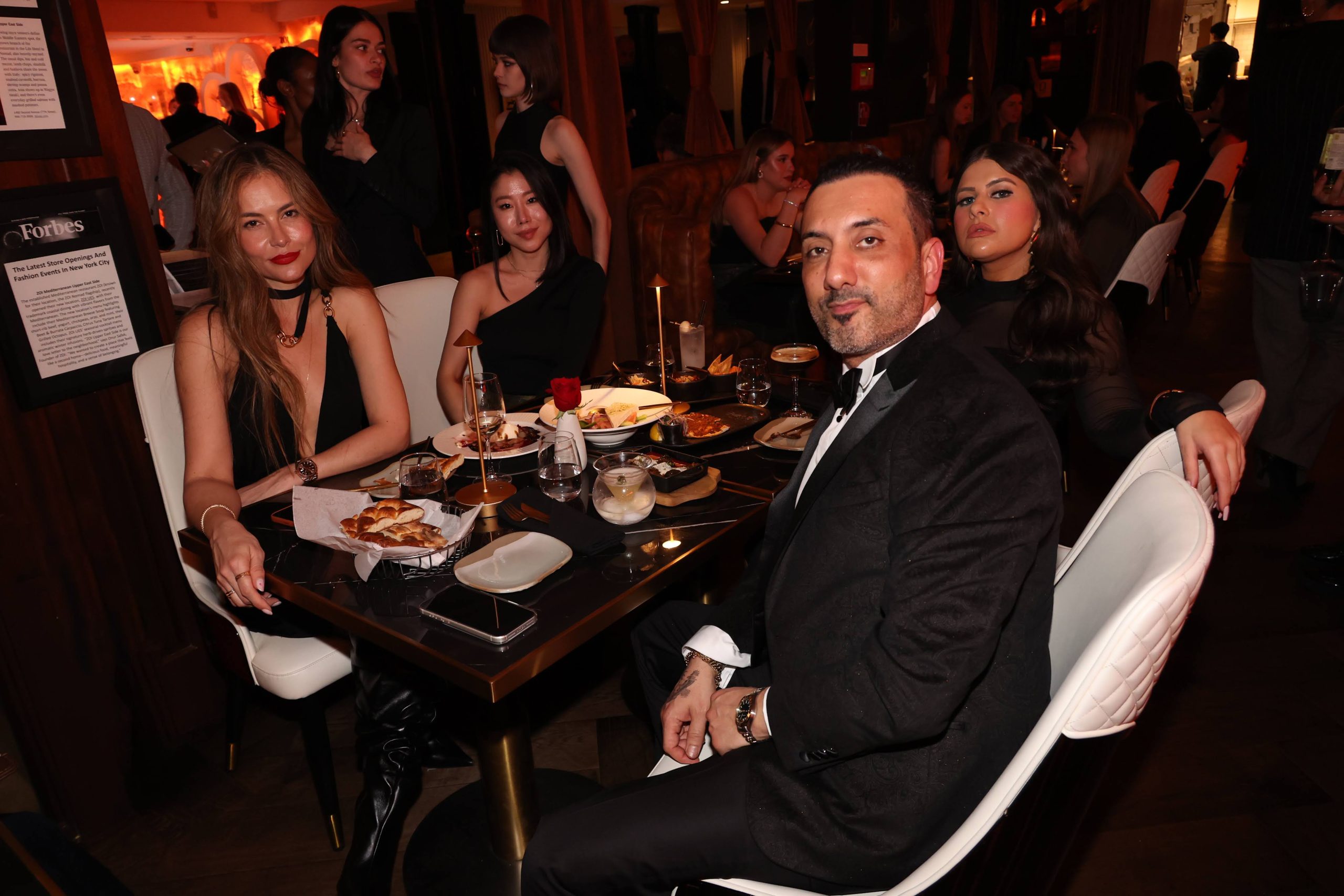 The festivities kicked off upstairs at Zoi Nomad. The space, celebrated for its intimate and candlelit atmosphere, offered a sanctuary of modern elegance. Guests were treated to a lavish, family-style Mediterranean feast where every dish reflected a commitment to authentic flavors and sophisticated presentation. tables lined with mezze, fire bread, Urfa-style grape leaves, and beet and burrata carpaccio. The dinner continued with standout mains including spicy rigatoni, duck a la tandir, short rib tandir, chicken skewers, and herb-infused grilled salmon, creating a rich, indulgent dining experience that set the tone for the buzzing night.