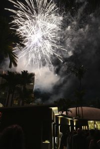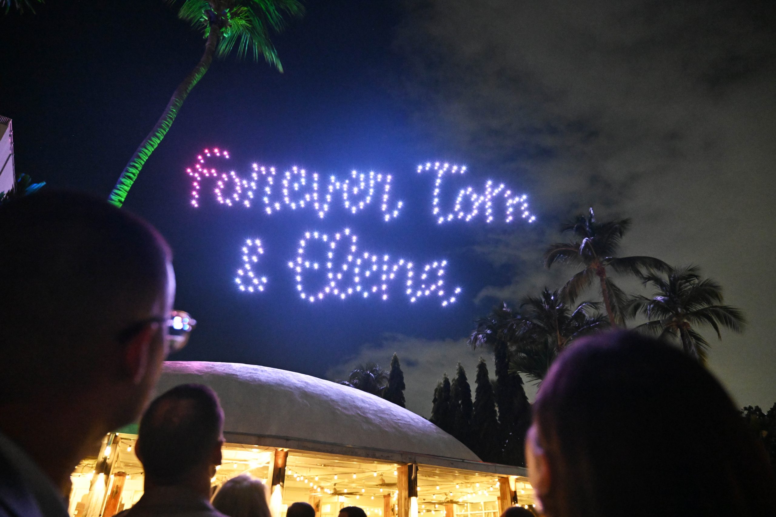 Following the surprise performances, an outdoor drone show lit up the Caribbean sky above Isla Verde, choreographed to music and tracing celebratory patterns overhead. As the drones dimmed, a full fireworks display erupted above the resort, drawing cheers from the crowd and setting the scene for the presentation of a birthday cake in honor of Dr. Alvarez-Westwood.