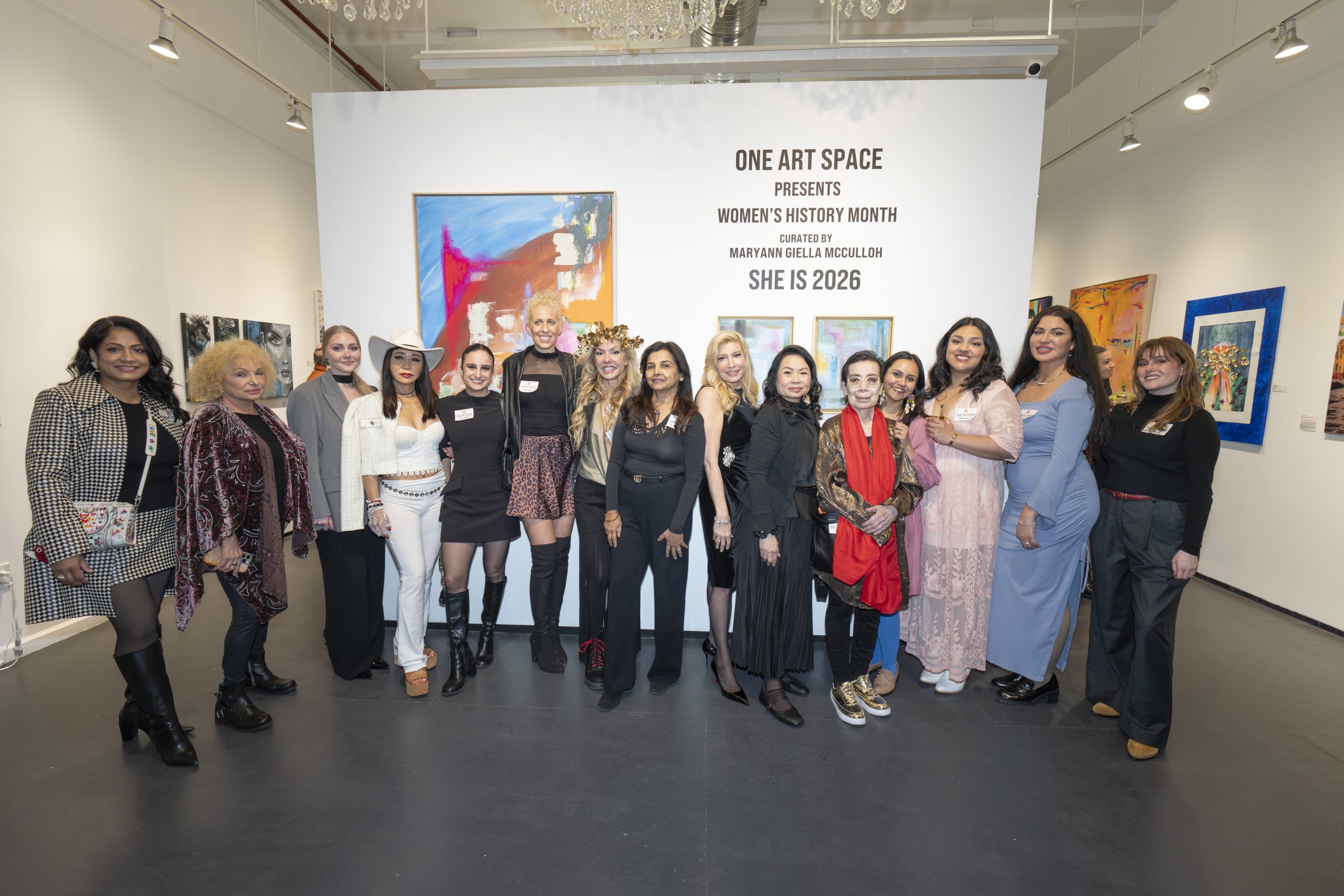 The celebration continued the following weekend with “She Is 2026,” which opened with a reception on Saturday, March 14th, 2026. The exhibition features Amdrita, Angelina Salgado, Ashley Medici, Brielle Bonetti, Frédérique Ilonga, Jean Chiang, Jennifer Davis, Luciana Pampalone, Monali Ghosh, Monisa Parekh, NancyLee Cidoni, Rosa Guadalupe, Sandra H. Andersen, SunHe Hong, Tatiana Grace, Madhu Powar Garg andToby Rabiner.