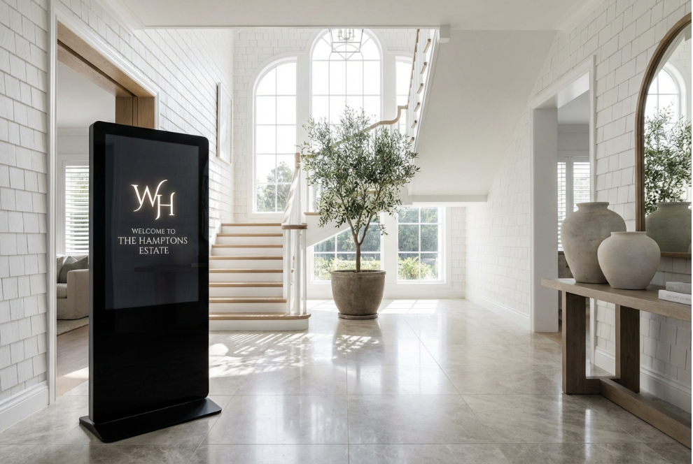 The challenge for planners is finding display hardware that does not betray its purely functional nature. Bulk, exposed cabling, and institutional enclosures disrupt the curated environment that elegant luxury hosting requires.