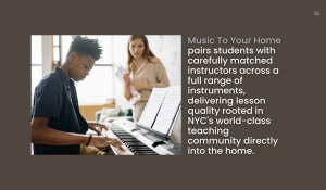 Lessons span piano, guitar, violin, drums, voice, and a broad range of additional instruments, all delivered by professional musicians and educators drawn from New York’s exceptionally deep teaching talent pool.