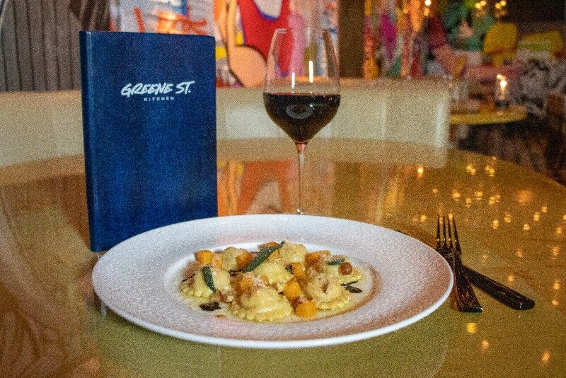In a pan, sauté the pre-cooked butternut squash in a pan with butter allowing it to turn brown. Add 2 oz of the pasta water to stop the cooking process on the butter. Cook the ravioli in salted water 3-4 min and transfer to the pan. Finish with parmesan cheese whole butter and chopped fresh sage.