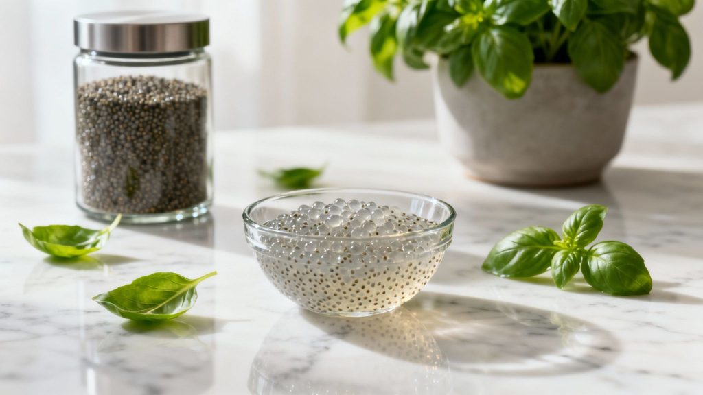 It is important to know how to soak them correctly. Unlike chia seeds, basil seeds hydrate quickly—usually within 10 to 15 minutes. This rapid hydration creates their signature coating, which is crucial for achieving the right texture and ensuring they are easy to digest. This is a fundamental step for any recipe.