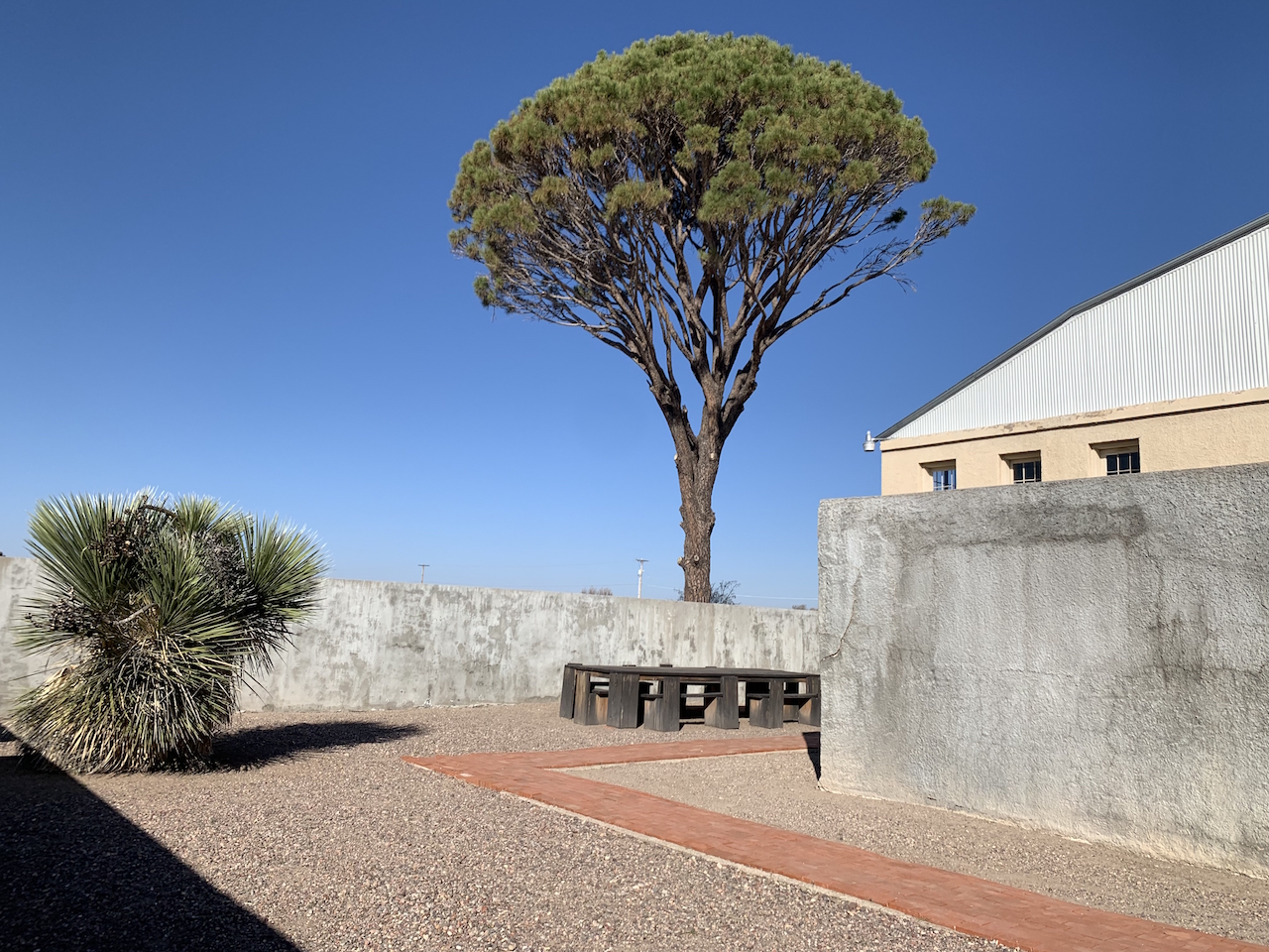 One of the most monumental (and instagrammable) landmarks of Marfa is an installation by artists Elmgreen and Dragset called Prada Marfa. Prada Marfa is a freestanding replication of a Prada store located 26 miles outside of Marfa and equipped with actual merchandise from the fashion line’s fall 2005 collection. This site-specific sculpture, made up of a traditional material to the region, adobe brick, was originally intended to naturally disintegrate into the surrounding landscape as a commentary on consumer culture. Due to early on vandalism and theft there have been constant efforts to maintain the site. Therefore, Prada Marfa still stands a decade after its October 2005 opening.