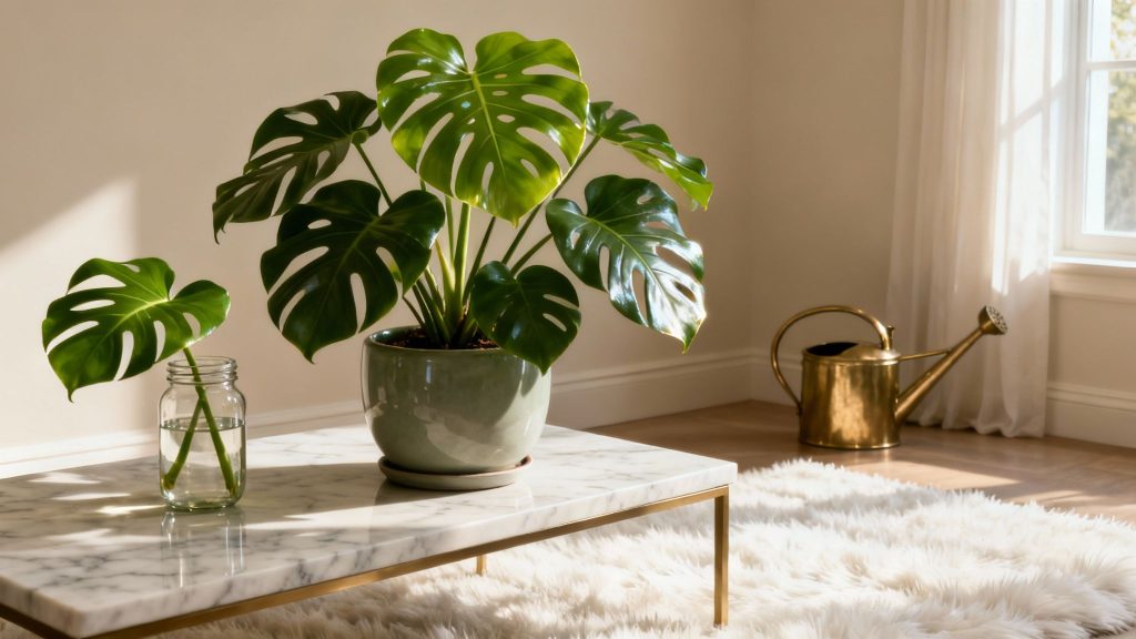 For gallery-style arrangements, position a Monstera next to minimalist artwork to draw attention to both plant and piece. Rotate the plant monthly to ensure symmetrical growth.