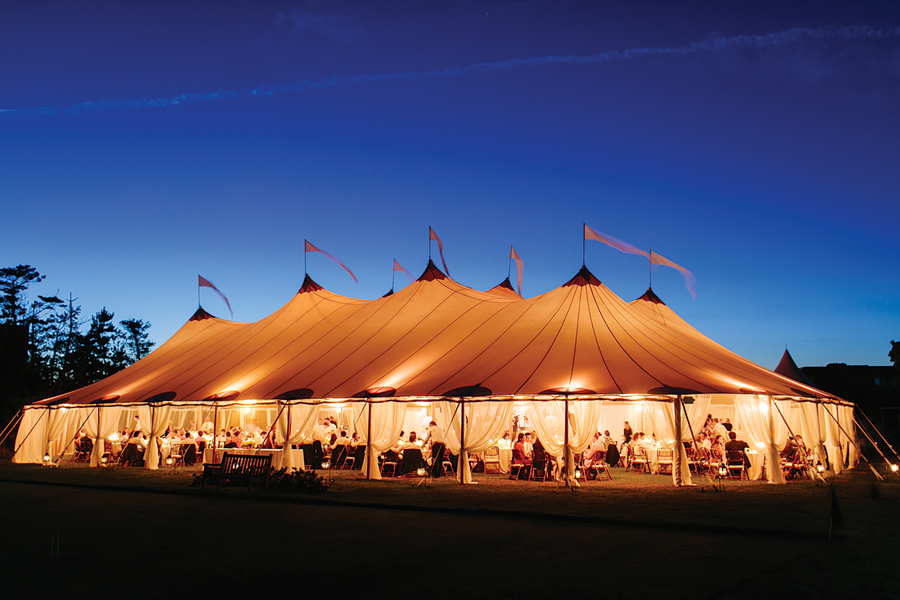 Unlike vinyl, which has a telltale sheen, chemical scent, and the potential for imperfect, factory-made seams, Sperry Tents’ durable sailcloth is ivory — not stark white, breathable, crisp, translucent to sunlight, and also translucent to event lighting at night, producing the trademark #sperryglow.